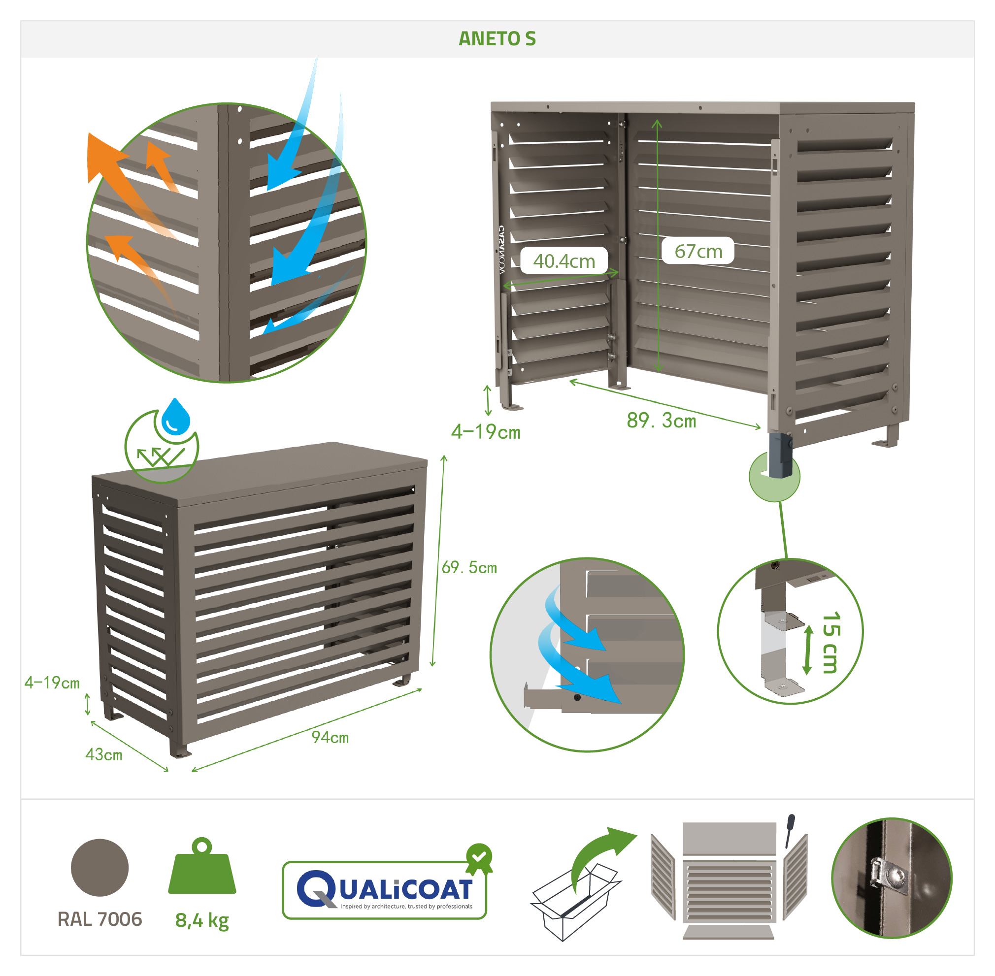 Cover Til Aircondition Og Varmepumpe ANETO Aluminium Taupe - Størrelse S